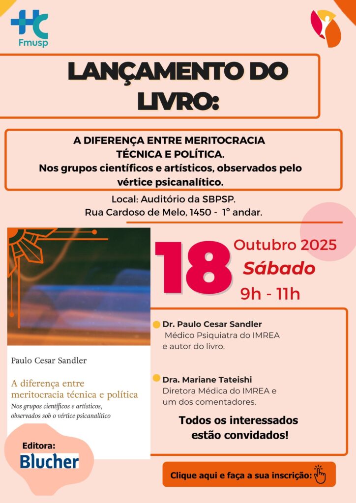 O Dr. Paulo Cesar Sandler (Médico Psiquiatra do IMREA) convida a todos para o lançamento do livro: A diferença entre meritocracia técnica e política.