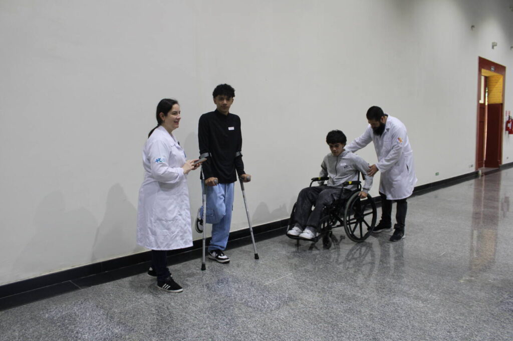 A programação teve início com um tour institucional pelas dependências da unidade, seguido de atividades interativas conduzidas pelas equipes de enfermagem, fisioterapia, terapia ocupacional, condicionamento físico, serviço social e psicologia. Entre as ações, os alunos participaram de um jogo sobre direção segura e de vivências práticas que simularam situações enfrentadas por pessoas com deficiência — como amarrar um sapato com apenas uma mão e se locomover utilizando cadeira de rodas, muletas ou andadores.